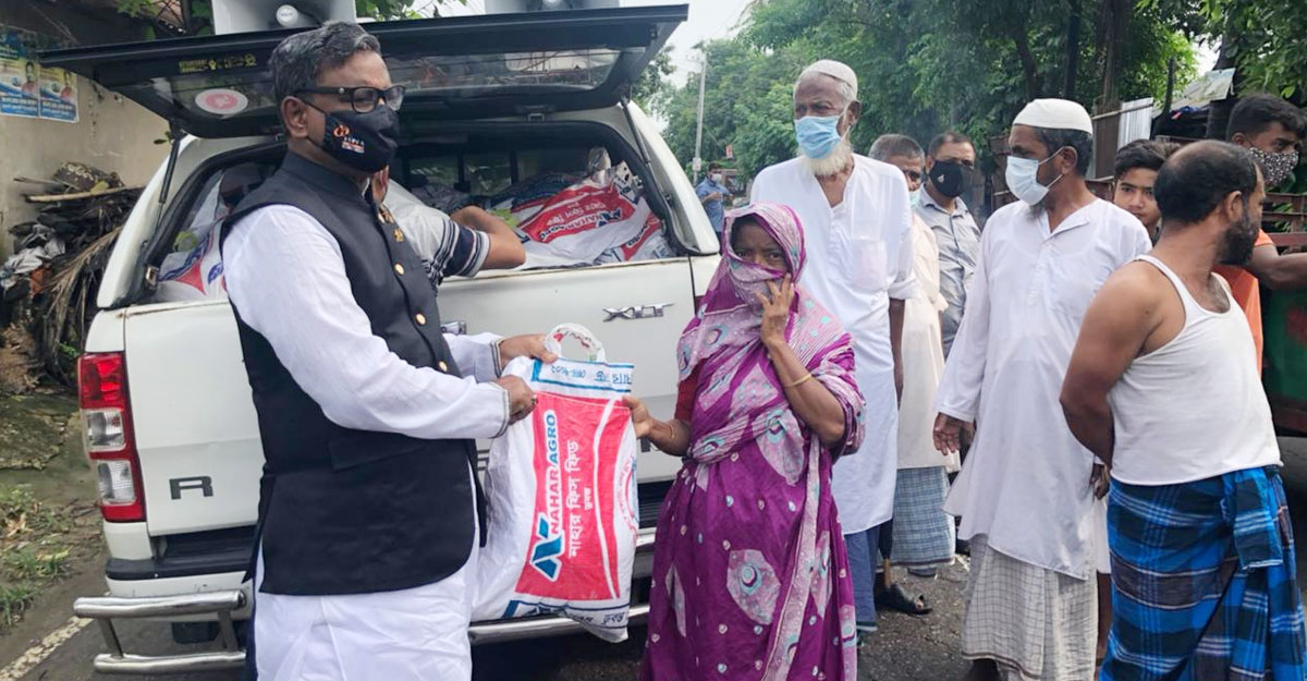 বাড়ি বাড়ি গিয়ে খাদ্যসামগ্রী বিতরণ করলেন কাদের মির্জা