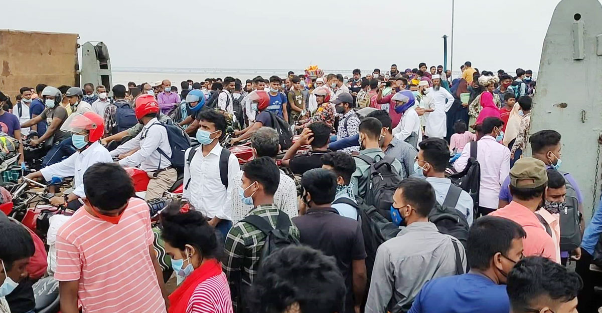 কঠোর বিধিনিষেধের ঘোষণায় শিমুলিয়ায় ঘরমুখো মানুষের চাপ