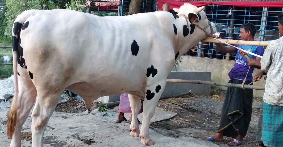স্থানীয় সূত্রে জানা গেছে, আড়াই বছর আগে জোবায়ের ইসলাম জিসানের খামারেই ষাঁড়টির জন্ম হয়। এরপর থেকে কোনো প্রকার ক্ষতিকর ওষুধ এবং খাবার ছাড়াই সম্পূর্ণ দেশীয় খাবার খাইয়ে তাকে লালনপালন করেছেন জিসান। ষাঁড়টি দেখতে ভিড় করছে আশপাশের মানুষজন। এর মধ্যে অনেক ক্রেতাই গরুটি কিনতে এসেছেন। কিন্তু দাম দর ঠিক না হওয়ায় এখনও গরুটি বিক্রি হয়নি। জিসান এই গরুটির দাম চাইছেন ১৩ লাখ টাকা।