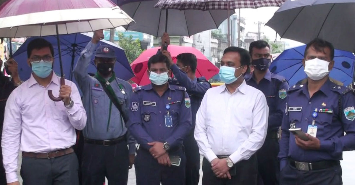 করোনাভাইরাসের বিস্তার রোধে বৃহস্পতিবার (১ জুলাই) সকাল ৬টা থেকে ৭ জুলাই মধ্যরাত পর্যন্ত মানুষের সার্বিক কার্যাবলী ও চলাচলে বিধিনিষেধ আরোপের প্রজ্ঞাপন জারি করা হয়েছে। বিধিনিষেধ সফল করতে লকডাউনের প্রথম দিন সকাল ৭টায় প্রচণ্ড বৃষ্টির মধ্যেই রাস্তায় নামেন জেলা প্রশাসক শামীম আহমেদ।