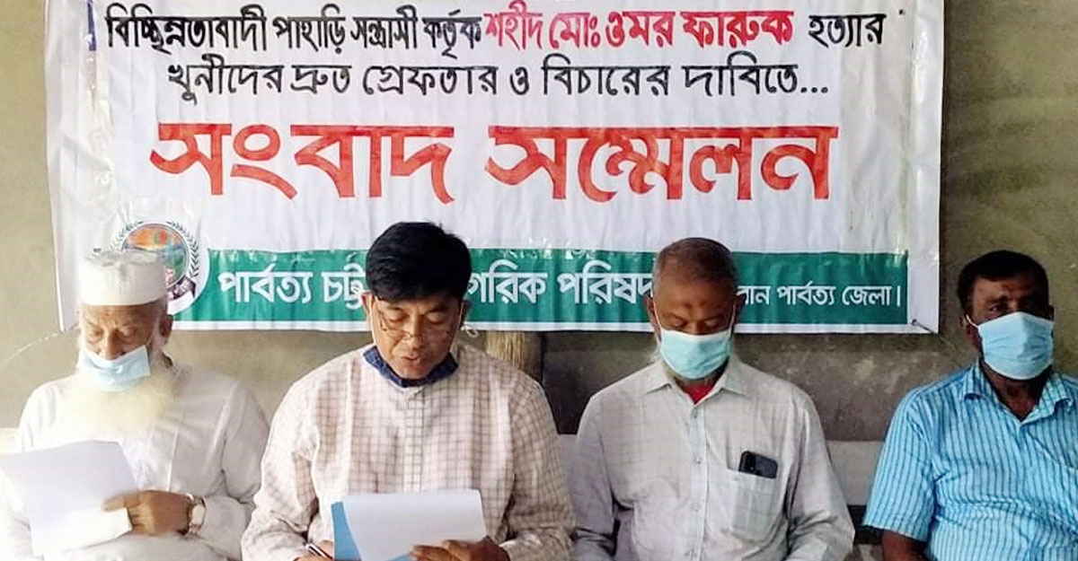 সংবাদ সম্মেলনে পার্বত্য চট্টগ্রাম নাগরিক পরিষদের বান্দরবান জেলার সভাপতি কাজী মো. মজিবর রহমান বলেন, বান্দরবানের রোয়াংছড়ি উপজেলার তুলাছড়ি মসজিদের ইমাম নওমুসলিম ওমর ফারুক হত্যার ঘটনায় এখনও কাউকে গ্রেফতার করা হয়নি। পাহাড়ের শান্তি-শৃঙ্খলা ভঙ্গে কিছু সন্ত্রাসী এখনো তাদের কর্মকাণ্ড অব্যাহত রেখেছে। অবিলম্বে এই হত্যাকাণ্ডের ঘটনায় জড়িতদের গ্রেফতার করে দৃষ্টান্তমূলক শাস্তি দিতে হবে।