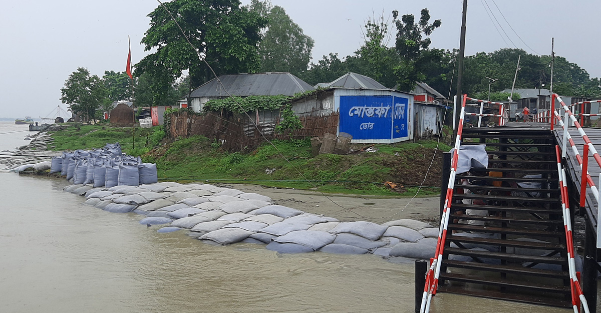 ভাঙন প্রতিরোধে পানি উন্নয়ন বোর্ডের জরুরি ভিত্তিতে লঞ্চঘাট এলাকায় বালু ভর্তি জিও ব্যাগ ফেলতে দেখা যায়। কিন্তু ফেরিঘাট রক্ষায় বিআইডব্লিউটিএর কোনো তৎপরতা চোখে পড়েনি।