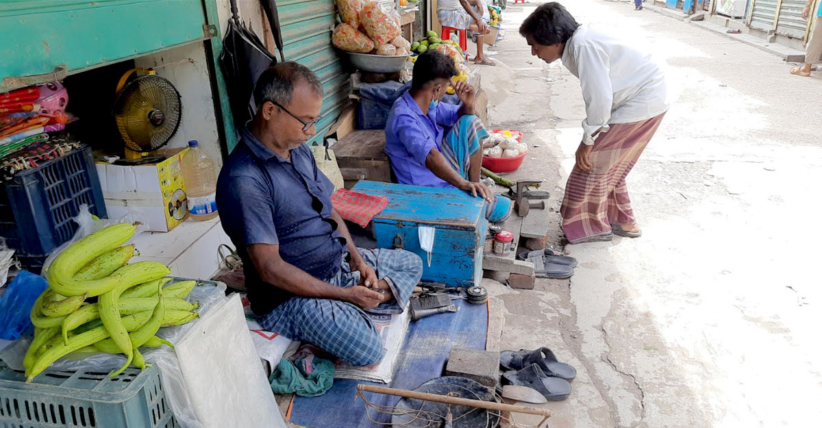 কথা হয় আরেক মুচি মধু বাবুর সঙ্গে। তিনি বলেন, সারাদিনে ৬০ টাকার কাজ করেছি। গতকাল সকালে ১০ টাকা আর দুপুরের পর ৬০ টাকা, এই মোট ৭০ টাকার কাজ করেছি। এতে চারজনের সংসারের বাজার করেছিলাম। আসার সময় বউ বলে দিয়েছে তেল নিতে। এখনও এক লিটার তেলের দাম রোজগার করতে পারিনি। মানুষ ঘর থেকে বের হয় না। জুতা-স্যান্ডেল-ব্যাগ কই পাব। যার অনেক দরকার তারাই শুধু বের হয়। তাও হাতে গোনা।