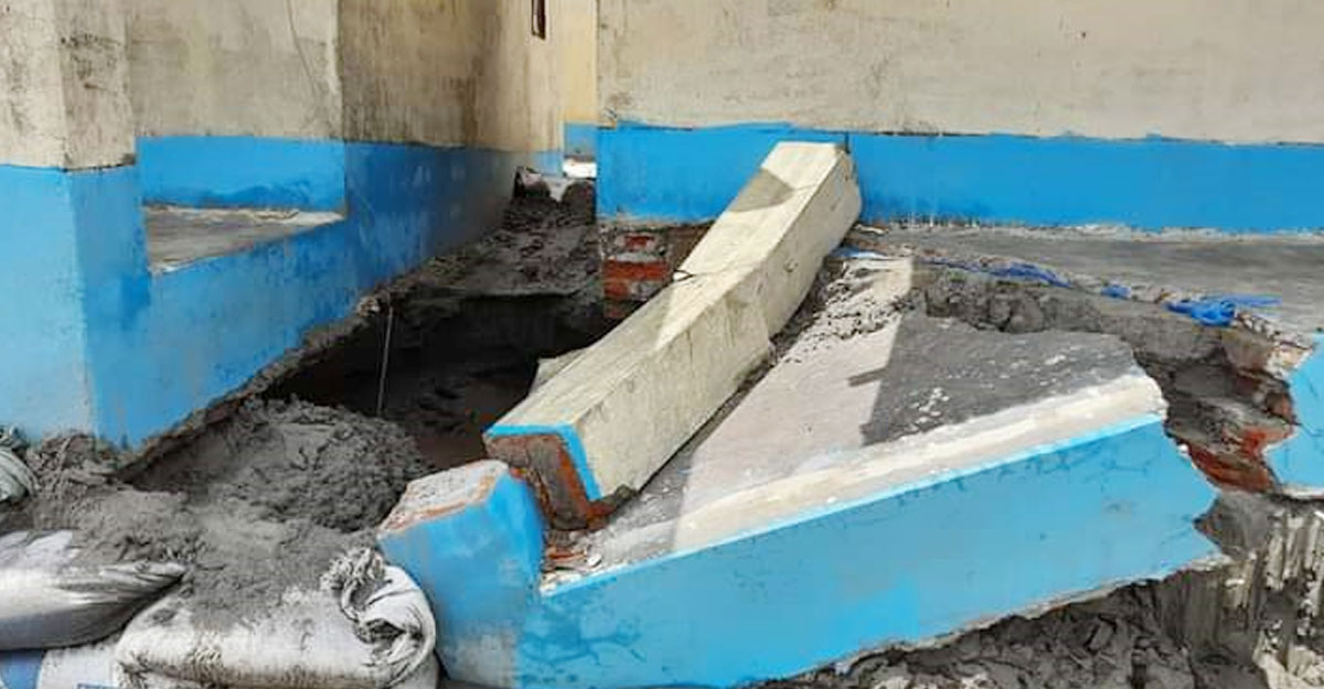 জানা গেছে, কয়েক দিনের টানা বর্ষণে শুক্রবার সকালে ওই স্থানের ২৮টি ঘরের মধ্যে ২৭ নম্বর ঘরের বারান্দার অংশ এবং একটি কলম ভেঙে পড়ে। ঘরের নিচ থেকে মাটি সরে যাওয়ার কারণে এমনটা হয়েছে।