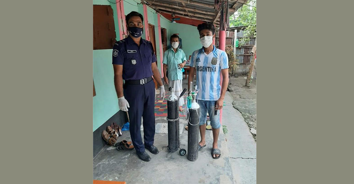 বিনামূল্যে অক্সিজেন সেবা দিচ্ছে নাটোর জেলা পুলিশ/ ছবি : ঢাকা পোস্ট
