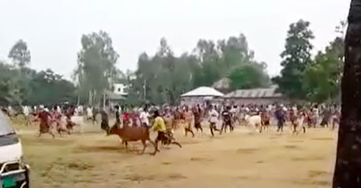 এর মধ্যেই বুধবার আবাদপুকুর পশুর হাটে হাজারো মানুষের সমাগম হয়। হাটে আসা বেশিরভাগ মানুষের মুখে মাস্ক ছিল না। স্বাস্থ্যবিধির কোনো বালাই ছিল না। খবর পেয়ে বিকেলে পুলিশ নিয়ে হাটে উপস্থিত হন উপজেলা নির্বাহী কর্মকর্তা (ইউএনও) সুশান্ত কুমার মাহাতো। এ সময় ভয়ে গরু-ছাগল নিয়ে হাট থেকে দৌড়ে পালিয়ে যান বিক্রেতারা। এতে মুহূর্তেই হাট ফাঁকা হয়ে যায়।