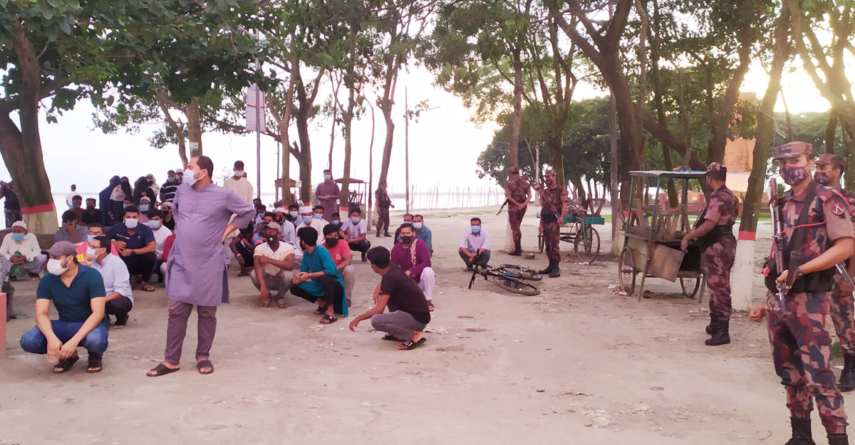 চাঁদপুরে কঠোর লকডাউনের মধ্যে পর্যটনকেন্দ্রে ঘুরতে আসা দর্শনার্থীদের ১৫ মিনিট বসিয়ে রেখে ব্যতিক্রমী শাস্তি দেওয়া হয়েছে। শুক্রবার (০৯ জুলাই) বিকেলে চাঁদপুরের বড়স্টেশন মোলহেডে জেলা প্রশাসন ও বিজিবি সদস্যরা অভিযান পরিচালনা করে দর্শনার্থীদের এ শাস্তি দেন।