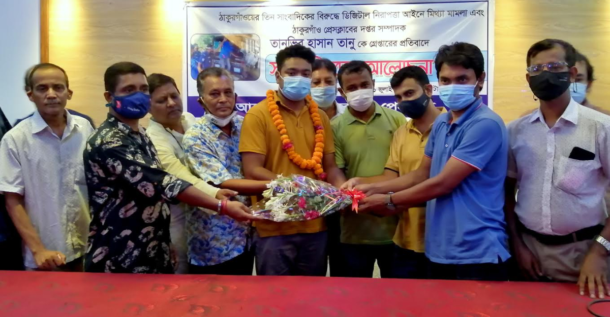 গত ৫ ও ৬ জুলাই ঠাকুরগাঁও আধুনিক সদর হাসপাতালের করোনা ওয়ার্ডের খাবার নিয়ে জাগোনিউজ টোয়েন্টিফোর ডটকম, নিউজবাংলা টোয়েন্টিফোর ডটকম ও বাংলাদেশ প্রতিদিন পত্রিকার অনলাইন সংস্করণে সংবাদ প্রকাশ করেছিলেন সাংবাদিক তানভীর হাসান তানু, রহিম শুভ ও আব্দুল লতিফ লিটু। পরে সংবাদটি ‘মিথ্যা, ভিত্তিহীন, বানোয়াট, জনরোষ সৃষ্টিকারী ও মানহানিকর’ দাবি করে ৯ জুলাই হাসপাতালের তত্ত্বাবধায়ক ডা. নাদিরুল আজিজ বাদী হয়ে ডিজিটাল নিরাপত্তা আইনে তাদের নামে মামলা দায়ের করেন।