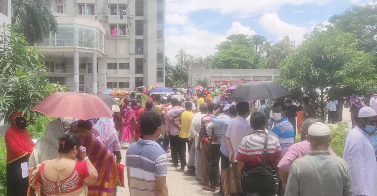 বাগেরহাট সদর হাসপাতাল ফটকের সামনে টিকাগ্রহীতার উপচে পড়া ভিড়
