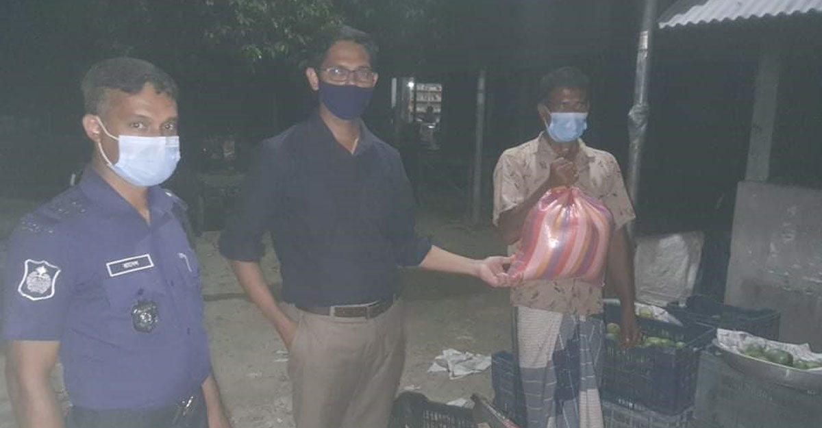 জানা যায়, মঙ্গলবার (১৩ জুলাই) সন্ধ্যায় বাজার মনিটরিংয়ে বের হন উপজেলা নির্বাহী কর্মকর্তা সোহাগ চন্দ্র সাহা। এ সময় আজিজনগর বাজারে সরকারের নির্দেশনা অমান্য করে অনেক ব্যবসায়ীকে দোকান খোলা রাখতে দেখে অভিযান পরিচালনা করেন তিনি। হাইওয়ে সড়কের পাশে আলাল উদ্দিন নামে ওই আমের দোকানদারকে অন্ধকারে আম নিয়ে বসে থাকতে দেখেন ইউএনও সোহাগ চন্দ্র সাহা। এ সময় তিনি আলাল উদ্দিনের কাছে সরকারি নির্দেশনা অমান্য করে দোকান খোলা রাখার কারণ জানতে চান। আলাল উদ্দিন জানান, লকডাউনের কারণে আম বিক্রি করতে পারেননি। তাই তার অনেক আম এরই মধ্যে নষ্ট হয়ে গেছে। উপায় না দেখে বিক্রির আশায় বস আছেন তিনি। পরে ইউএনও সোহাগ চন্দ্র সাহা আলাল উদ্দিনের দোকানে থাকা ৩৪ কেজি আম কিনে আশ্রয়ণ প্রকল্পের বসবাস করার গরিব মানুষের মাঝে বিতরণ করেন।