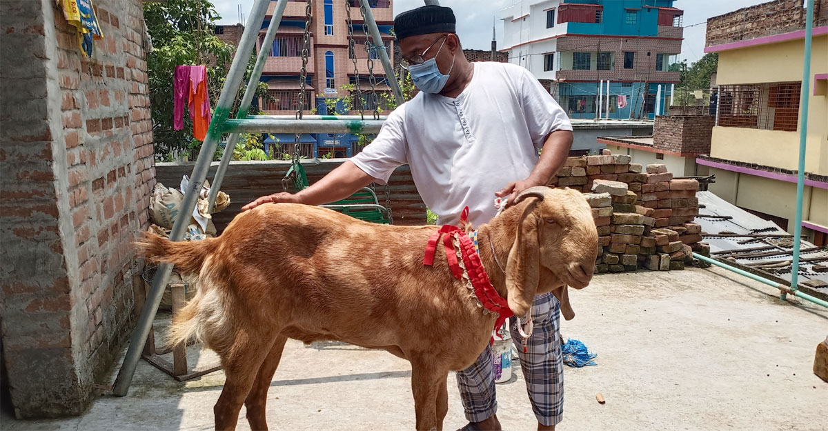 ঈদুল আজহায় কোরবানি দেওয়ার জন্য চাঁপাইনবাবগঞ্জের শিবগঞ্জ বাজারের বাসিন্দা ইউসুফ আলী গত এক বছর ধরে লালন-পালন করছেন একটি ছাগল। ভারতীয় হরিয়ানা জাতের ছাগলটির নাম রাজাবাবু। প্রায় ৮৫ কেজি ওজনের ছাগলটি দেখতে প্রতিদিনই ভিড় করছেন বিভিন্ন এলাকার মানুষ। বিক্রি নয়, বরং নিজের পরিবারের কোরবানির জন্য ছাগলটি লালন-পালন করেছেন ইউসুফ আলী।