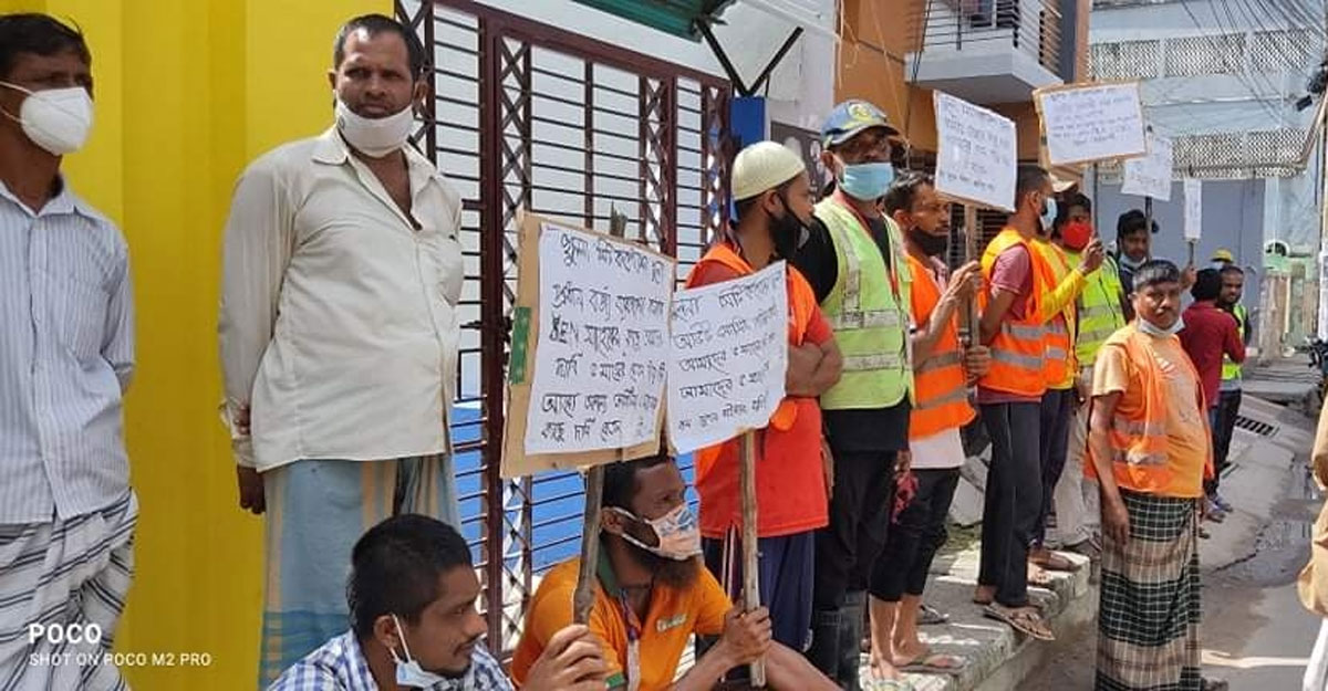 বেতনের দাবিতে কেসিসির পরিচ্ছন্নকর্মীদের বিক্ষোভ