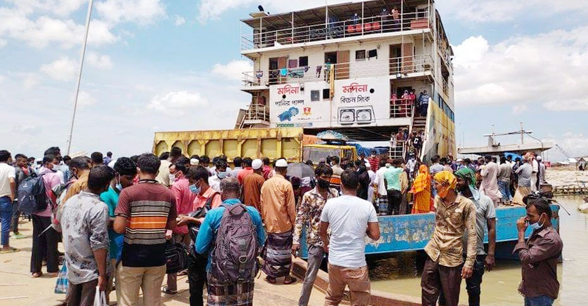 বাংলাবাজার ঘাটে ঘরমুখো যাত্রীদের চাপ