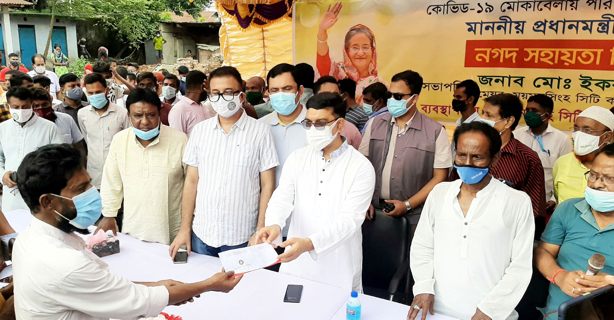 করোনায় ক্ষতিগ্রস্ত ময়মনসিংহের ৬৫০ পরিবহনশ্রমিককে প্রধানমন্ত্রীর উপহার হিসেবে ৫০০ টাকা করে অর্থসহায়তা দেওয়া হয়েছে। বুধবার (১৪ জুলাই) বিকেলে তাদের হাতে এ উপহার তুলে দেন ময়মনসিংহ সিটি করপোরেশনের (মসিক) মেয়র ইকরামুল হক টিটু।