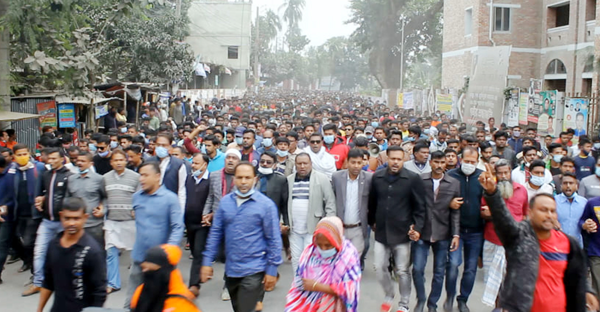 শনিবার (১২ ডিসেম্বর) দুপুর ১২টায় শহরের অনন্ত বাজার থেকে মিছিল বের হয়ে বিভিন্ন সড়ক ঘুরে আওয়ামী লীগ কার্যালয়ের সামনে প্রতিবাদ সভা অনুষ্ঠিত হয়। সভায় বকুল হত্যাকারীদের গ্রেফতারের দাবি জানানো হয়।