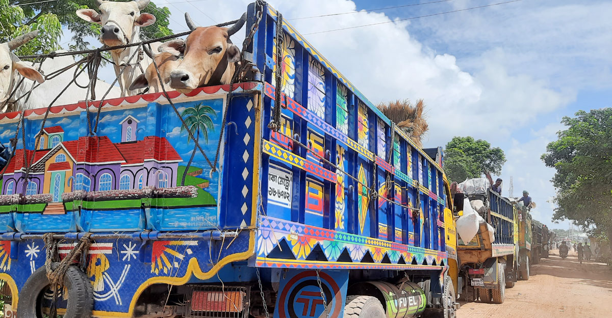 সরেজমিনে দেখা গেছে, যাত্রীবাহী বাস পারাপারের জন্য দাঁড়িয়ে আছে। তবে গরু বোঝাই ট্রাককে প্রধান্য দিয়ে ফেরি চলাচল করছে। বিশ্বরোডের খায়ারপট্টি এলাকা থেকে ফেরিঘাট পর্যন্ত তিন কিলোমিটার এলাকায় ট্রাক দাঁড়িয়ে থাকতে দেখা গেছে। গাড়ির চাপ নিয়ন্ত্রণের জন্য ট্রাফিক পুলিশ কাজ করে যাচ্ছে।
