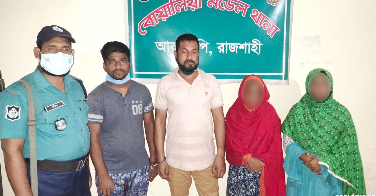 গ্রেফতাররা হলেন নগরীর কয়েরদাঁড়া এলাকার আয়েজ উদ্দিনের ছেলে রবিউল ইসলাম (৪৬), নজরুল ইসলামের ছেলে তরিকুল (২৫), নাটোরের লালপুরের অর্জুনপাড়া গ্রামের আকবর হোসেনের স্ত্রী বেলী খাতুন (৩৩), নওগাঁর মান্দার তৌহিদুল ইসলামের স্ত্রী রেহেনা পারভীন (৪০)।