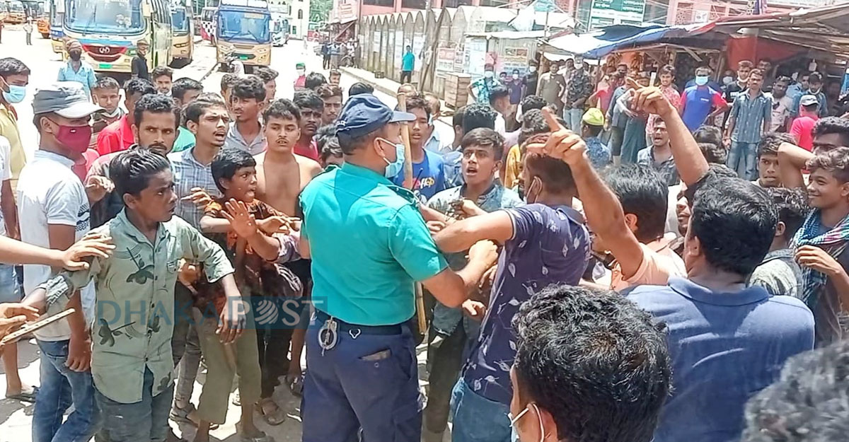 শ্রমিকরা জানান, রূপাতলীতে বৃহস্পতিবার (১৫ জুলাই) শ্রমিক ইউনিয়নের নেতাদের মারধরের ঘটনায় জড়িতদের গ্রেফতারের দাবিতে জেলা বাস-মিনিবাস মালিক ও শ্রমিকদের সংগঠন সকাল সোয়া ১০টা থেকে সড়ক অবরোধ করে। অবরোধ চলাকালে দুপুর ১টার দিকে কালো টি-শার্ট পরিহিত এক যুবক আমাদের ব্যারিকেড তুলে নিতে বলেন।