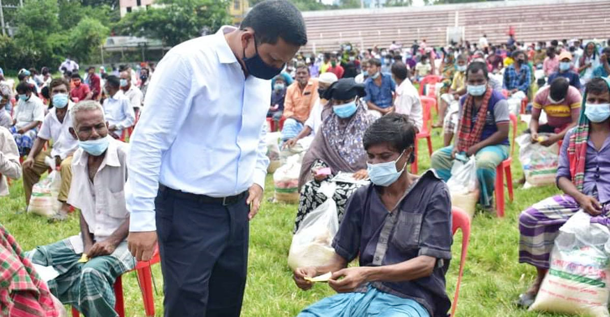 অনুষ্ঠানে সবাইকে মাস্ক পরিহিত অবস্থায় সামাজিক দূরত্ব বজায় রেখে চেয়ারে বসিয়ে খাদ্যসামগ্রী প্রদান করা হয়। প্রত্যেক পরিবারকে ১০ কেজি চাল, ১ লিটার তেল, ১ কেজি আলু, ১ কেজি পেঁয়াজ, ১ কেজি মসুর ডাল, সেমাই, নুডলস, চিনি, গুঁড়ো দুধ ও সাবান দেওয়া হয়।