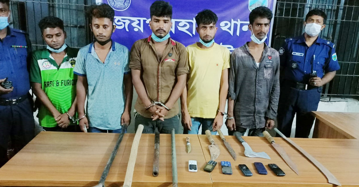 আটকরা হলেন- সদরের হাড়াইল এলাকার মন্টু হোসেনের ছেলে আবির হাসান (২৬), সোটাহার উত্তরপাড়া এলাকার আ. আলিমের ছেলে রনি আকরাম (২৭), হানাইল বম্বু এলাকার মৃত আফজাল হোসেনের ছেলে মো. নয়ন (২৯), হাড়াইল বাবুপাড়া এলাকার বকুল মিয়ার ছেলে খুশিবুজ্জামান খুশিব (২৪) ও দিনাজপুর জেলার বিরামপুর উপজেলার ছোট মানুষ মোড়া গ্রামের মৃত মোজাহার আলীর ছেলে হাবিবুর রহমান বাশার (২৭)। বাশার জয়পুরহাট শহরের আরাফাত নগর এলাকায় বসবাস করেন।