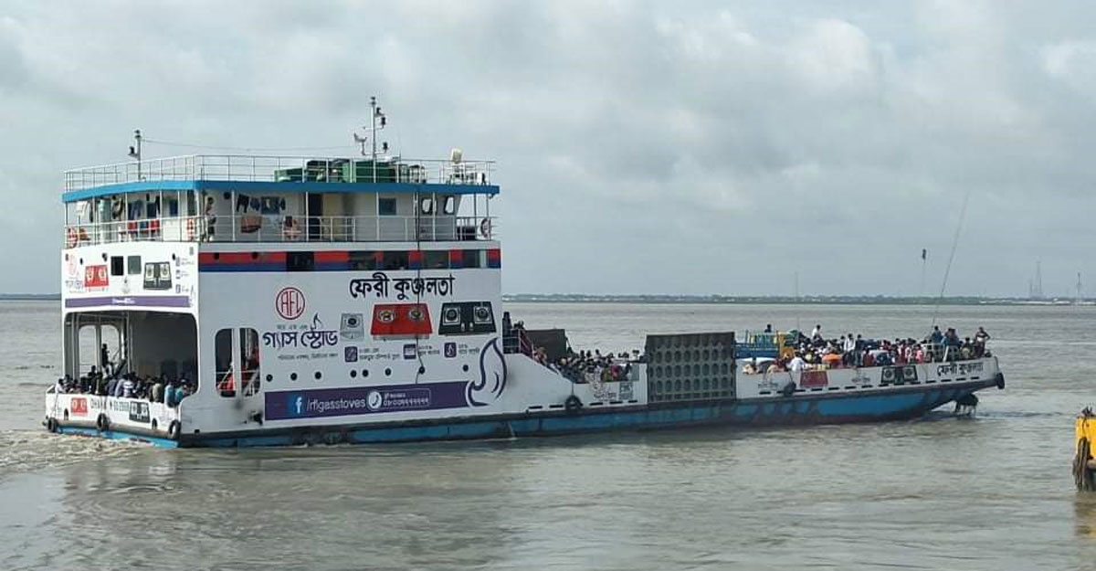 ঈদে গণপরিবহন ও ব্যক্তিগত গাড়ির চাপ বাড়ায় ফেরিতে যানবাহন পারাপারে বেগ পেতে হচ্ছে। ঘাটে পারাপারের অপেক্ষায় অবস্থান করছে ৫ শতাধিক ব্যক্তিগত গাড়ি ও পণ্যবাহী ট্রাক।