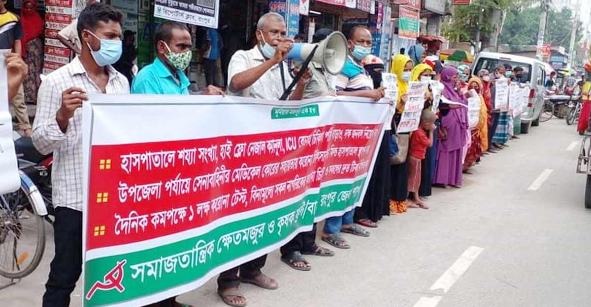 একই সঙ্গে দরিদ্র মানুষের ১ মাসের খাদ্য ও নগদ ৫ হাজার টাকা প্রদান ও করোনায় মারা যাওয়া পরিবারগুলোকে আর্থিক ক্ষতিপূরণ প্রদানের দাবি জানান তারা। পরে রংপুর জেলা সিভিল সার্জন ডা. হিরম্ব কুমার রায়ের মাধ্যমে স্বাস্থ্যমন্ত্রী বরাবর স্মারকলিপি প্রদান করেন নেতারা।