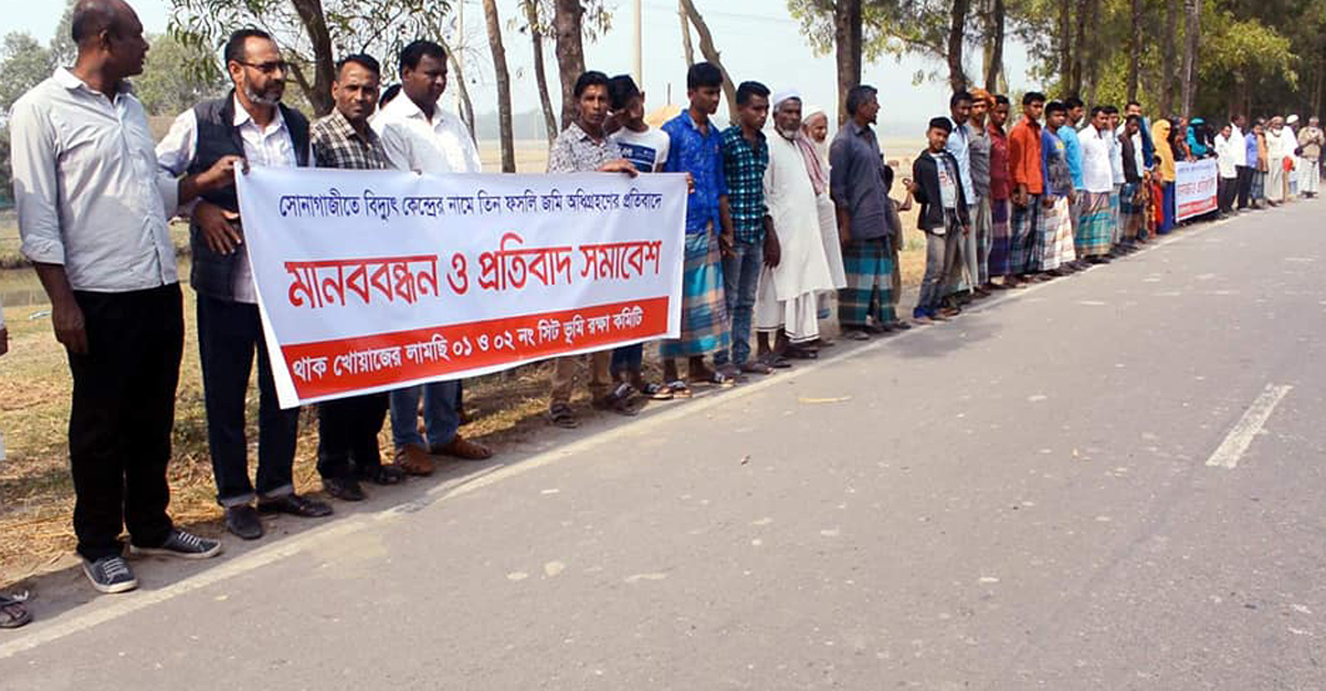 উপজেলার থাক খোয়াজের লামছি ১ ও ২ নম্বর সিট ভূমিরক্ষা কমিটির উদ্যোগে উপজেলার মুহুরী প্রজেক্ট এলাকায় বেসরকারি প্রতিষ্ঠান সোলার পাওয়ার লিমিটেডের তিন ফসলি আবাদী ভূমি অধিগ্রহণের প্রতিবাদে এ মানববন্ধন হয়।