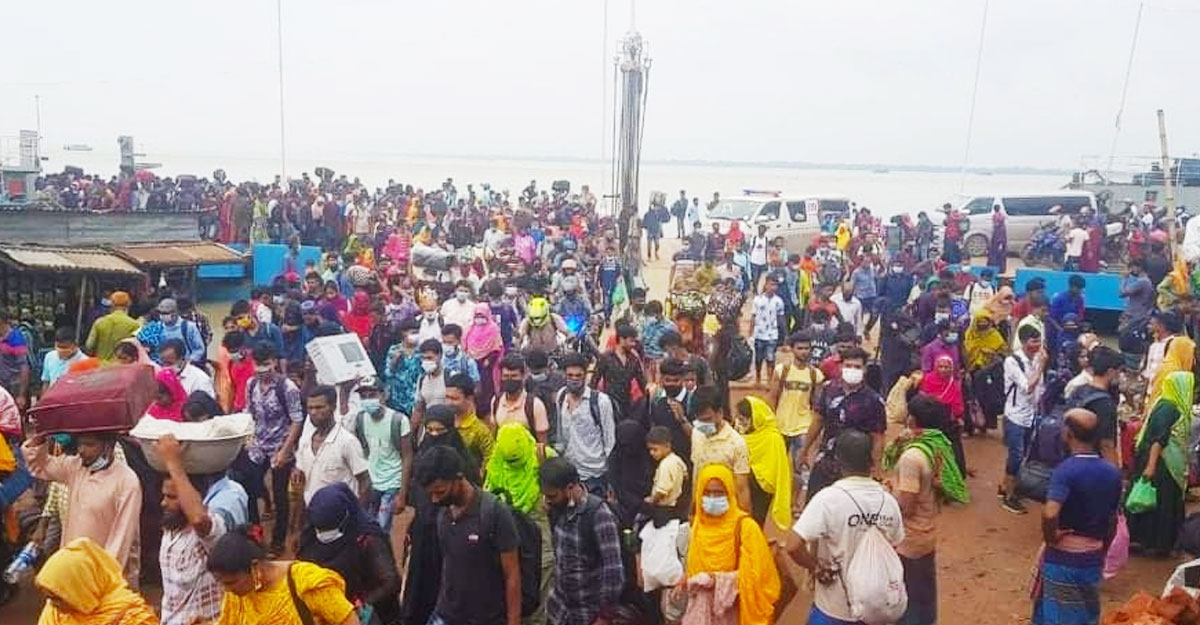 দৌলতদিয়ায় ঘরমুখো মানুষের ঢল