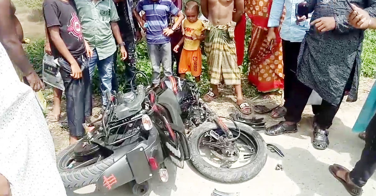 দুর্ঘটনাকবলিত মোটরসাইকেল