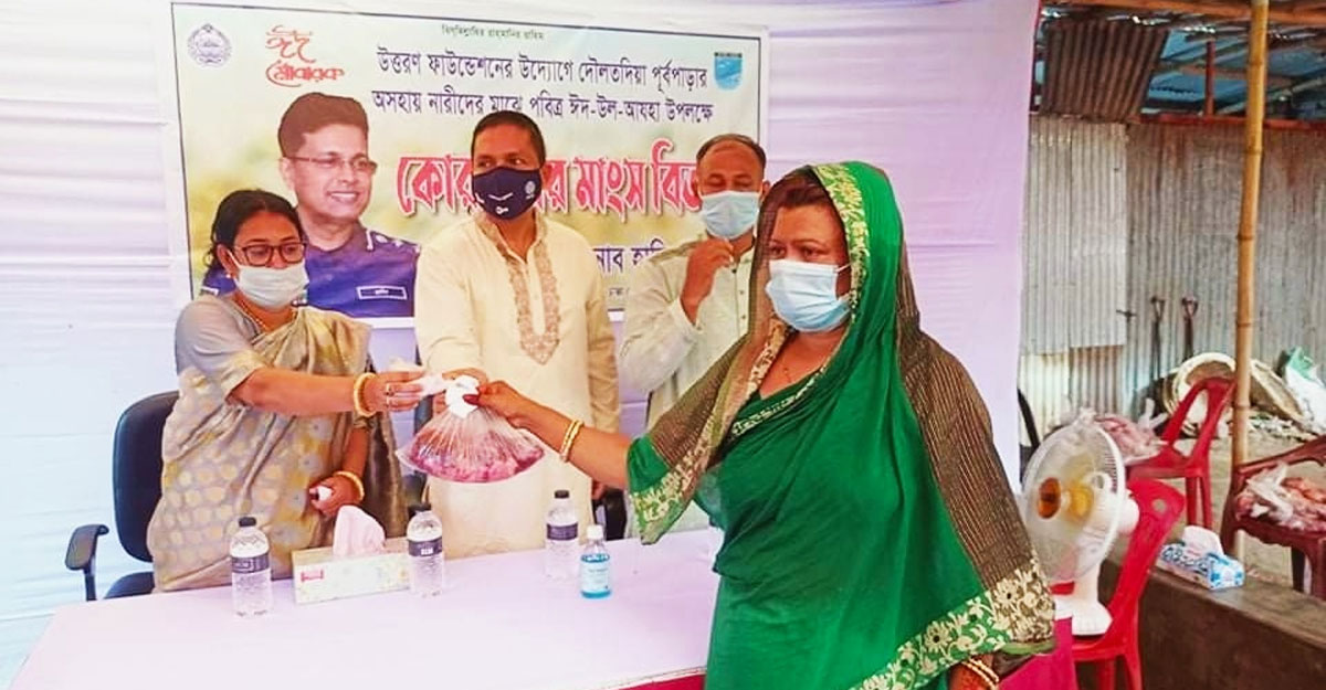 জেলার গোয়ালন্দ উপজেলার দৌলতদিয়া যৌনপল্লির ১৫০০ পরিবারের মাঝে ‘উত্তরণ ফাউন্ডেশন’র উদ্যোগে ও পুলিশের ঢাকা রেঞ্জের ডিআইজি হাবিবুর রহমানের ব্যবস্থাপনায় কোরবানির মাংস বিতরণ করা হয়েছে।