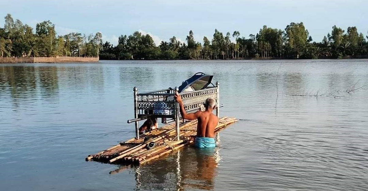 মৃত দিলোয়ারা বেগমের আত্মীয়স্বজন জানান, মৃতদেহটি কবরস্থান পর্যন্ত নিয়ে যাওয়ার জন্য যে সড়কটি রয়েছে, তা খুবই খারাপ। একটি খাটিয়া নিয়ে ওই সড়ক দিয়ে যাওয়া বড়ই দুষ্কর। তাই বাধ্য হয়েই একটি বাঁশের ভেলায় মৃতদেহ বহনকারী খাটিয়ে রেখে ভাসিয়ে কবরস্থানে নেওয়া হয়েছে।