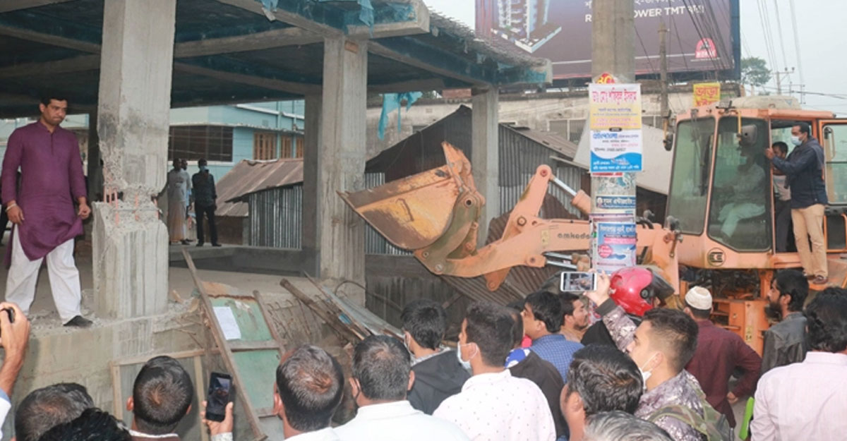 বরিশাল মহানগর ছাত্রলীগের সভাপতি জসিম উদ্দিনের নির্মাণাধীন ভবনে উচ্ছেদ অভিযান