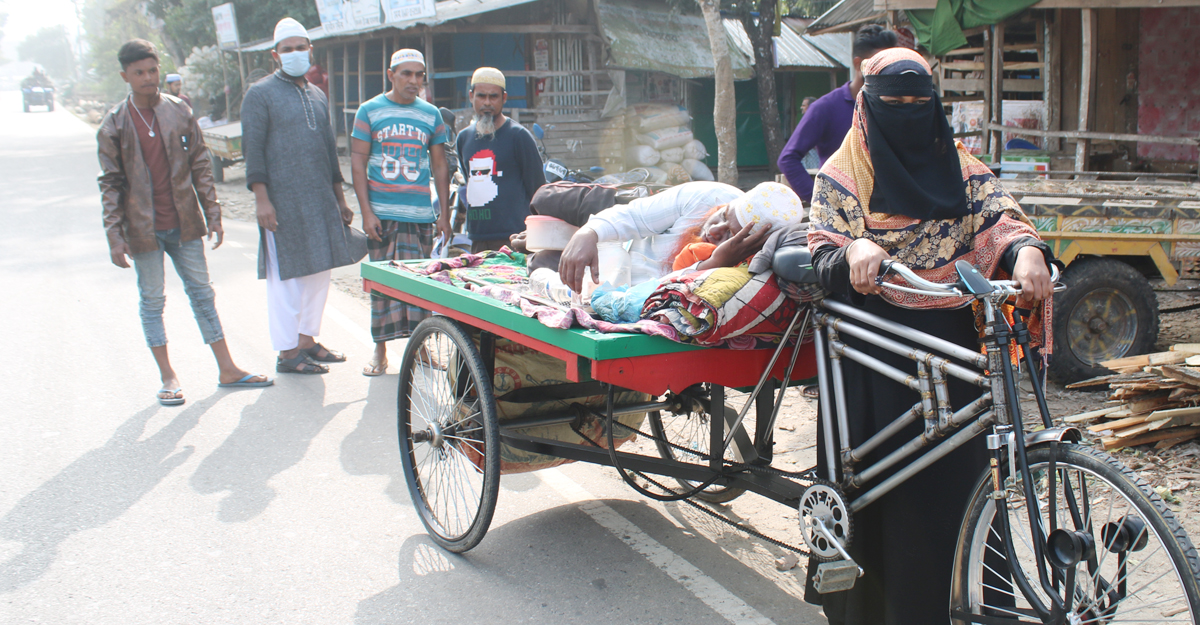তিনদিন ভ্যান চালিয়ে স্বামীকে নিয়ে হাসপাতালে স্ত্রী