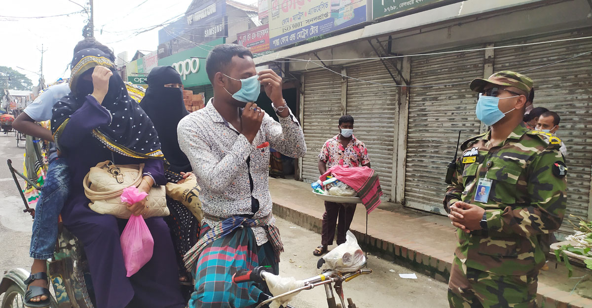 লকডাউন চলাকালে অপ্রয়োজনে মানুষকে ঘর থেকে বের না হওয়ার কথা বলা হলেও শহরে মাস্ক ছাড়াই অনেককে চলতে দেখা গেছে। কেউ কেউ থুতনির নিচে কিংবা পকেটে মাস্ক রেখে ঘুরছিলেন। সেনাবাহিনী দেখামাত্রই থুতনি থেকে টেনে মুখে মাস্ক নিচ্ছিলেন। সেনা সদস্যদের থেকে দূরে গিয়েই হয় মাস্ক খুলে নিচ্ছেন নয়তো থুতনিতে নামিয়ে দিচ্ছেন।