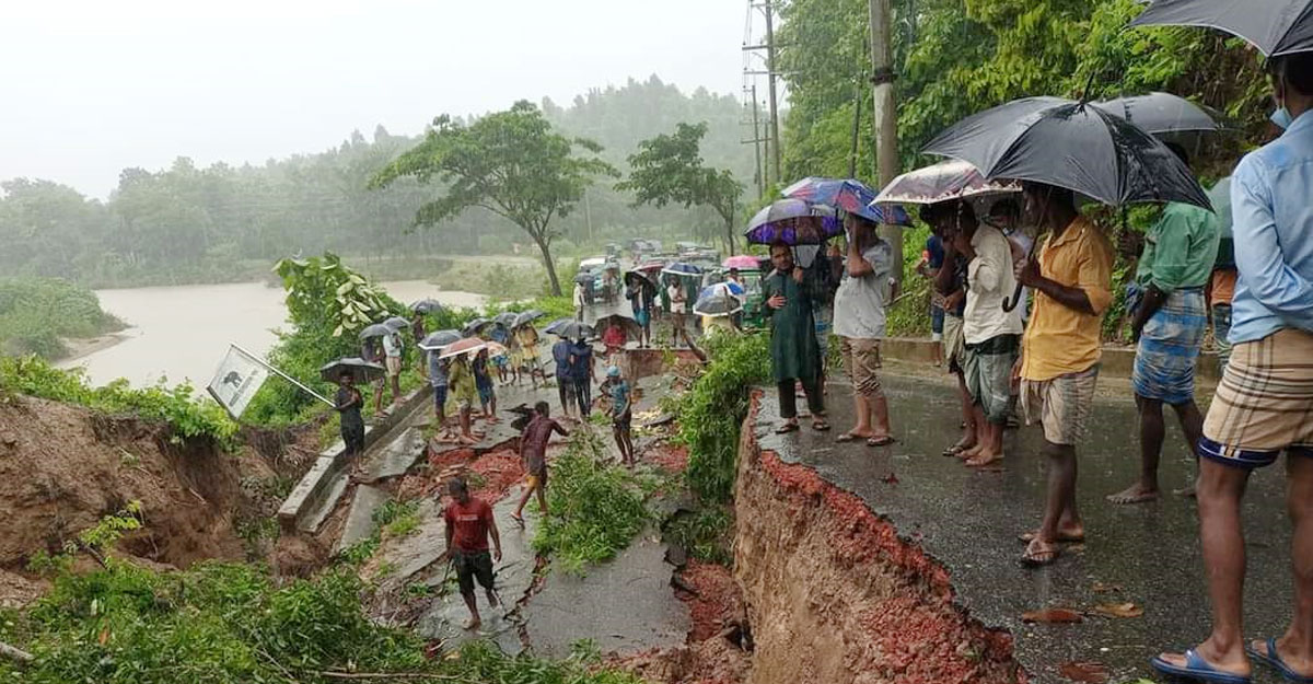 ভারী বর্ষণের ফলে সড়ক ধসে দেড়শ ফুট নিচে পড়ে গেছে। এতে কক্সবাজারের ঈদগাঁওয়ের সঙ্গে রামুর ঈদগড় ইউনিয়নের সড়ক যোগাযোগ বিচ্ছিন্ন হয়ে দুই লক্ষাধিক মানুষের দুর্ভোগ বেড়েছে।