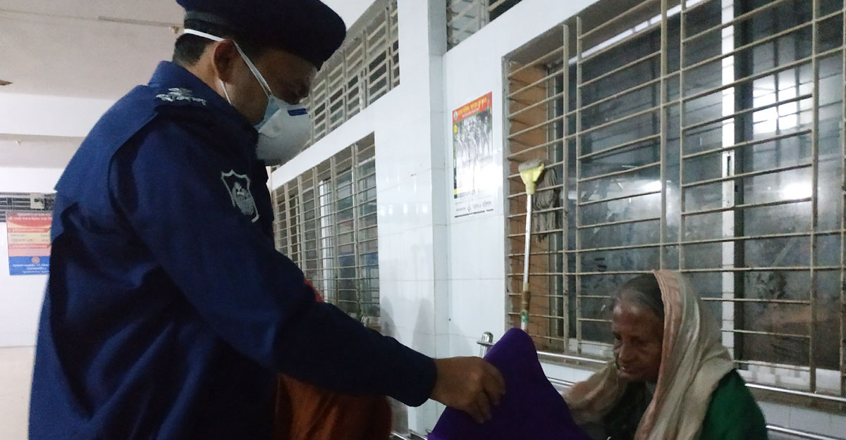 ছিন্নমূল মানুষকে কম্বল দিচ্ছেন পুলিশ সুপার মোহাম্মদ মইনুল হাসান