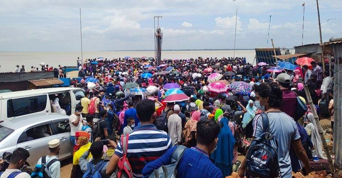 অনেককে দেখা গেছে দক্ষিণ-পশ্চিমাঞ্চলের বিভিন্ন অঞ্চল থেকে ব্যাটারিচালিত অটোরিকশা রিজার্ভ করে ঘাটে আসছেন। তারা এসে সরাসরি ফেরিতে উঠছেন। ফেরিতে ব্যক্তিগত গাড়ি মোটরসাইকেল আর আগত যাত্রীদের নিয়েই ছেড়ে যেতে দেখা গেছে। ফেরিতে মানা হচ্ছে না কোনো স্বাস্থ্যবিধি।