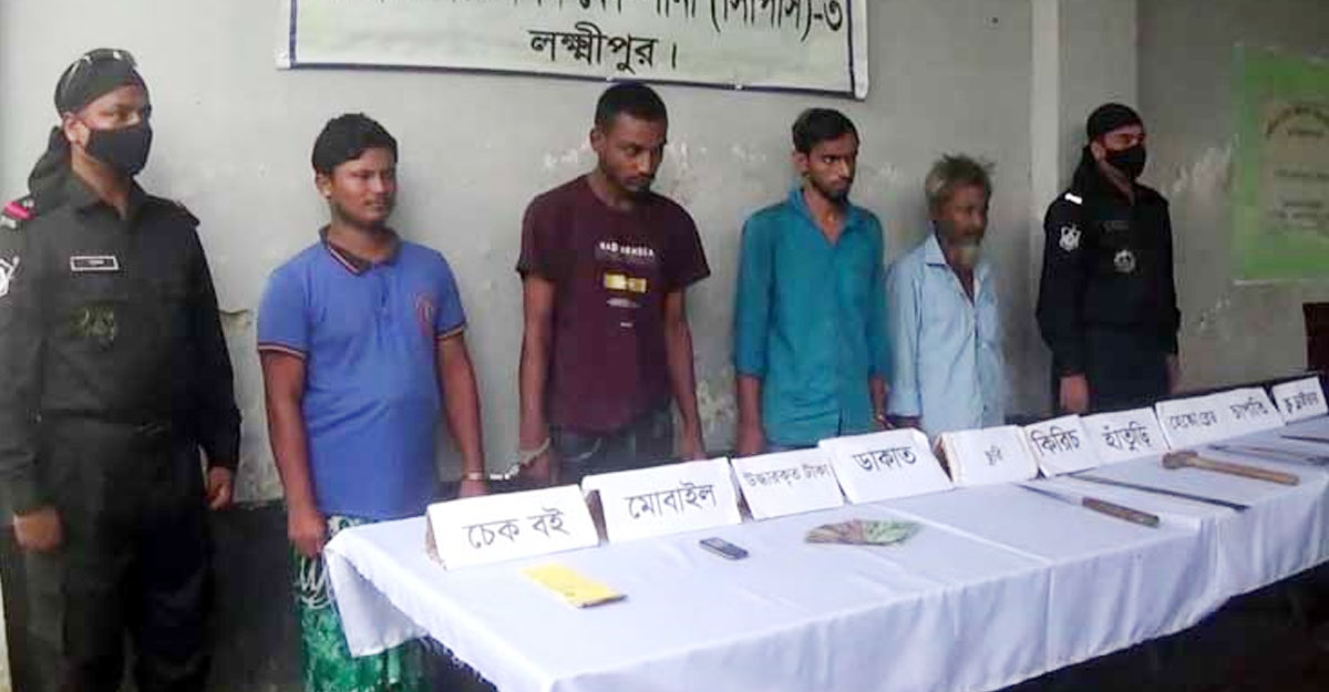 র্যাব জানায়, গত ১৯ জুলাই বিকেলে লক্ষ্মীপুর পৌরসভার বাইশমারা এলাকার ইসলামী ব্যাংকের এজেন্ট শাখার দরজা ও ভল্ট ভেঙে ৩ লাখ ১৬ হাজার ৫০ টাকা লুট করা হয়। পরে এজেন্ট শাখার দায়িত্বপ্রাপ্তদের অভিযোগে ও সিসি টিভির ফুটেজ দেখে টাকা লুটকারীদের চিহ্নিত করা হয়। শুক্রবার (৩০ জুলাই) রাতের বিভিন্ন সময় অভিযান চালিয়ে লাহারকান্দি গ্রাম থেকে টাকা লুটকারীদের আটক করা হয়েছে। এ ঘটনায় সদর মডেল থানায় তাদের বিরুদ্ধে মামলার প্রস্তুতি চলছে। তবে ঘটনায় জড়িত আরও একজন পলাতক রয়েছেন। তাকে আটক ও লুণ্ঠিত টাকা উদ্ধার করা সম্ভব হয়নি।