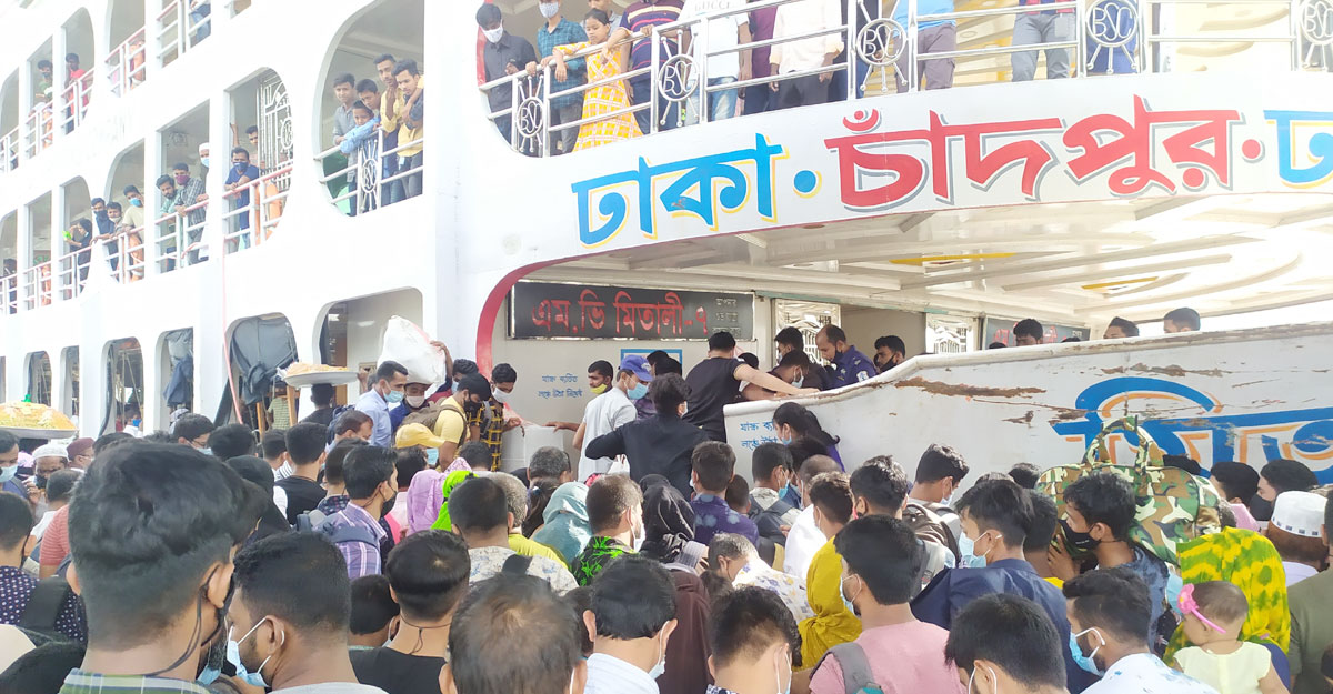 চাঁদপুর লঞ্চঘাটে মানুষের ঢল