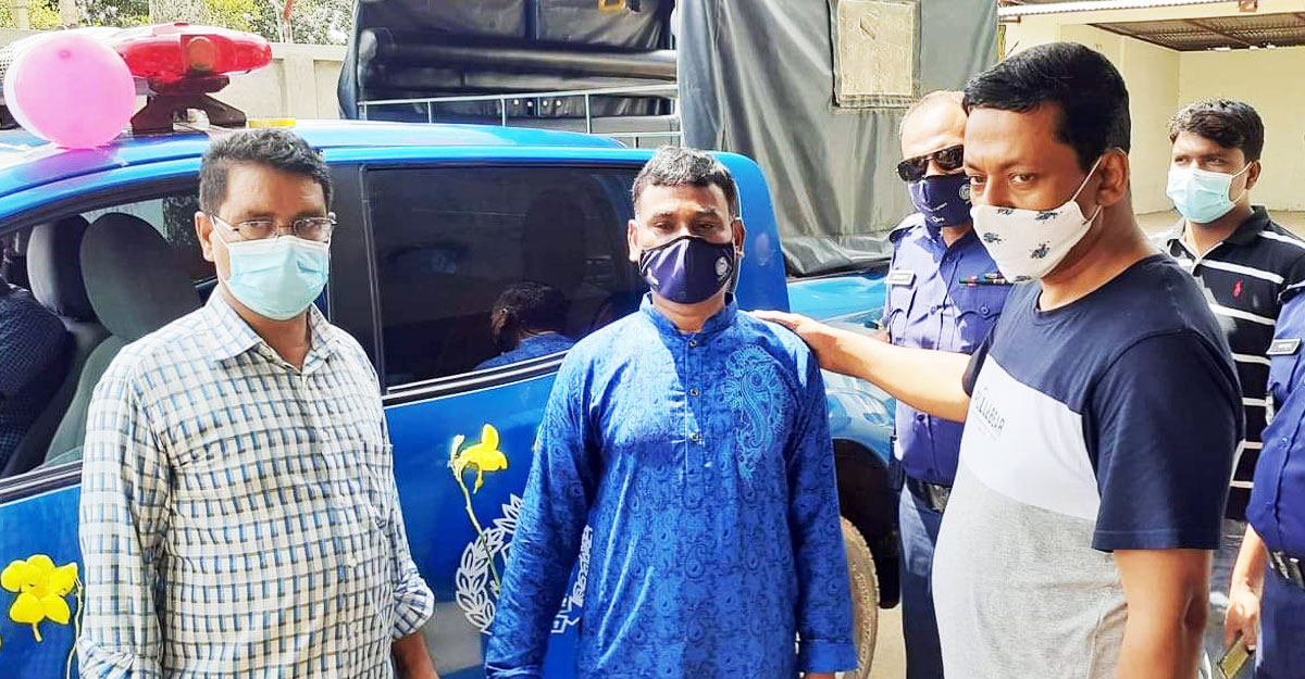 গাড়ি সাজিয়ে অবসরপ্রাপ্ত পুলিশ সদস্যকে পৌঁছে দেওয়া হলো বাড়ি