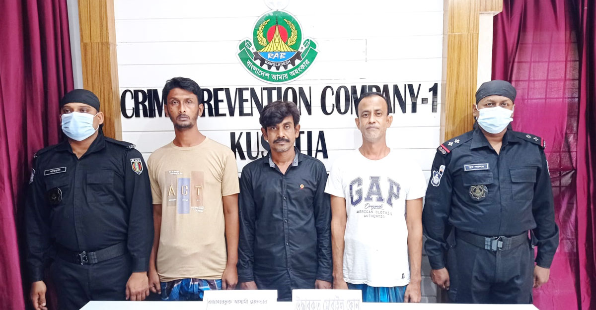 আটকরা হলেন ইসলামী বিশ্ববিদ্যালয় থানা এলাকার হাতিয়া গ্রামের মোকাদ্দেস হোসেন, শহরের চৌড়হাসের আমিরুল ইসলাম বেল্টু ও পূর্ব মজমপুরের জহুরুল ইসলাম।