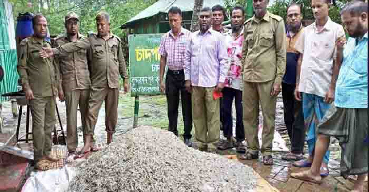 এ সময় একটি নৌকাও জব্দ করা হয়। পরবর্তীতে বনরক্ষীরা চিংড়ি মাছগুলোকে কেরোসিন দিয়ে মাটিচাপা দেন।