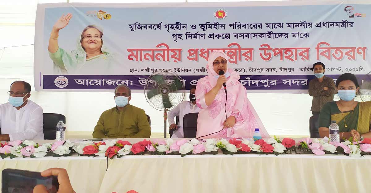 মন্ত্রী বলেন, সারাদেশে গৃহহীনদের জন্য যেভাবে গৃহ নির্মাণ করা হয়েছে। চাঁদপুর জেলায় ঠিক তেমনিভাবে গৃহ নির্মাণ করা হচ্ছে এবং পর্যায়ক্রমে হস্তান্তর করা হচ্ছে। সদর উপজেলার লক্ষ্মীপুর মডেল ইউনিয়নে সুন্দরভাবে গৃহগুলো নির্মাণ করায় জেলা প্রশাসক, ইউএনও ও ইউনিয়ন পরিষদ চেয়ারম্যানকে ধন্যবাদ জানাই।