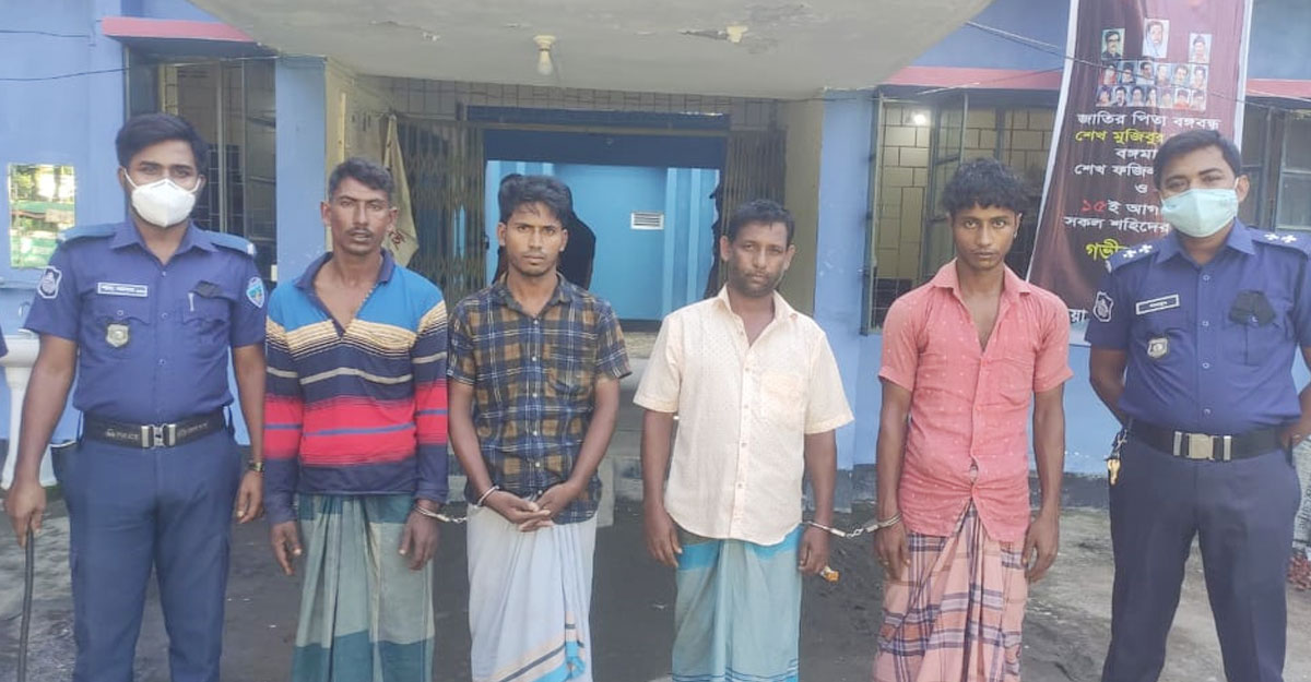 গ্রেফতাররা হলেন- নিঝুমদ্বীপ ইউনিয়নের জেলে কলোনীর এনায়েতের ছেলে আক্তার (২৭), একই ইউনিয়নের বান্দাখালী গ্রামের মাকসুদুল হকের ছেলে হক সাব (৩৪), মদিনা গ্রামের তাজুল ইসলামের ছেলে সোহেল (৩০) ও জেলে কলোনীর মৃত সাইদুল হকের ছেলে রাশেদ মাঝি (৪২)।