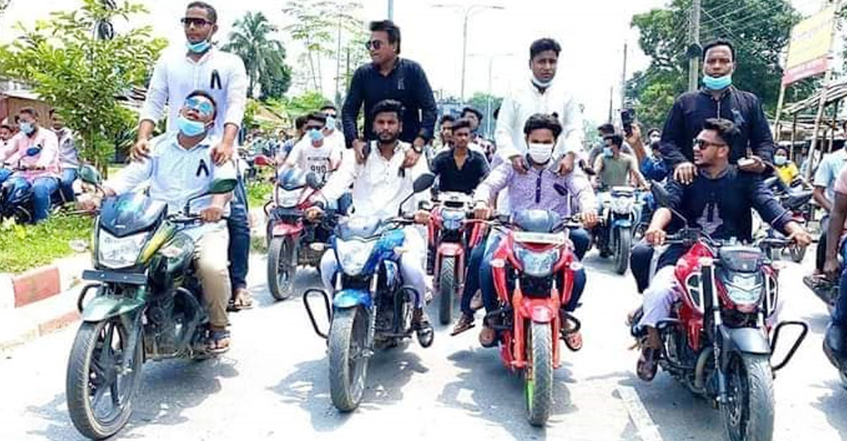 দেশে করোনাভাইরাসে আক্রান্ত ও মৃত্যুর সংখ্যা দিন দিন বেড়েই চলছে। পরিস্থিতি নিয়ন্ত্রণে লকডাউনের সময় বাড়ানো হলেও সেটিকে বৃদ্ধাঙ্গুলি দেখিয়ে ঠাকুরগাঁওয়ে মোটরসাইকেল শোডাউন করেছে জেলা ছাত্রলীগের নতুন কমিটি।