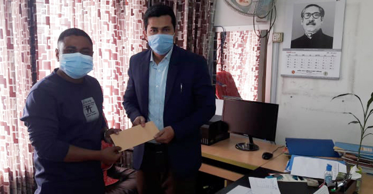 জরিমানার ২৫ শতাংশ টাকা সাংবাদিক কাইয়ুম উল্লাসের হাতে তুলে দেন ভোক্তা অধিকার সংরক্ষণ অধিদপ্তরের সহকারী পরিচালক শ্যামল পুরকায়স্থ