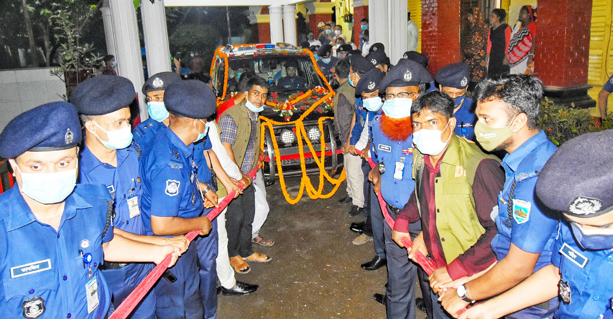 লাল দড়ি দিয়ে গাড়ি টেনে এসপিকে বিদায়