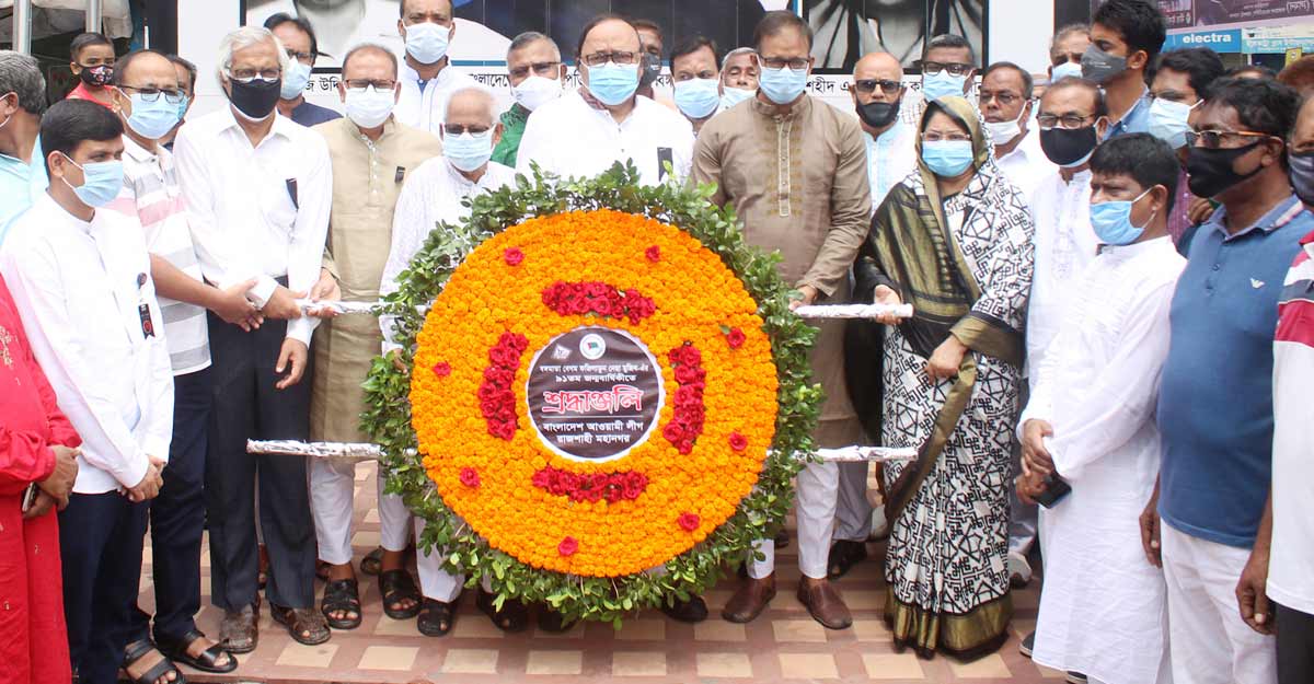 বেলা ১১টার দিকে নগরী কুমারপাড়াস্থ দলীয় কার্যালয়ের স্বাধীনতা চত্বরে বঙ্গবন্ধু ও জাতীয় চার নেতার প্রতিকৃতিতে পুষ্পস্তবক অর্পণ করে আওয়ামী লীগ। এ সময় বঙ্গমাতার ছবিতে পুষ্পামাল্য অর্পণ করা হয়।
