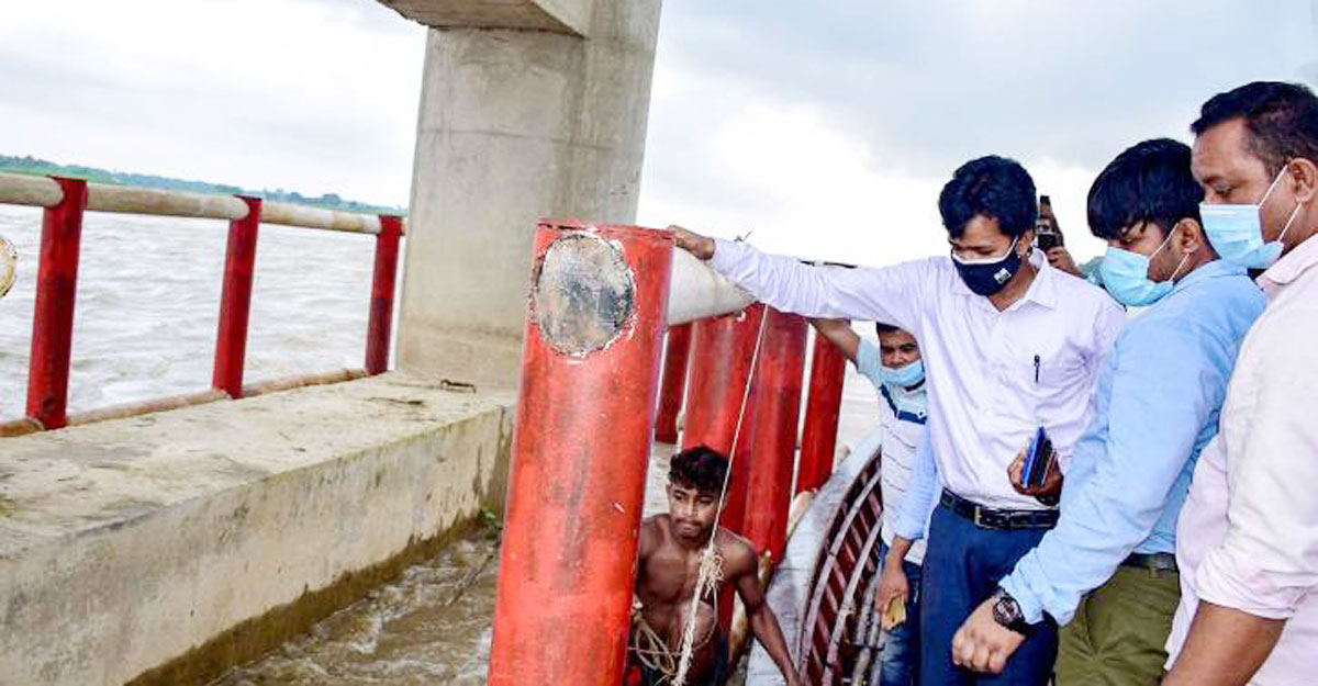 স্থানীয়রা জানান, উজান থেকে বালুবোঝাই একটি ট্রলার ভাটির দিকে আসার পথে সেতুর মাঝামাঝি একটি খুঁটির সঙ্গে সজোরে ধাক্কা খায়। এতে সেতুর একটি পিলারের নেভিগেশন গার্ড ভেঙে গেছে। এ ছাড়া সেতুর একটি খুঁটির সিমেন্টের প্রলেপ খসে পড়েছে।