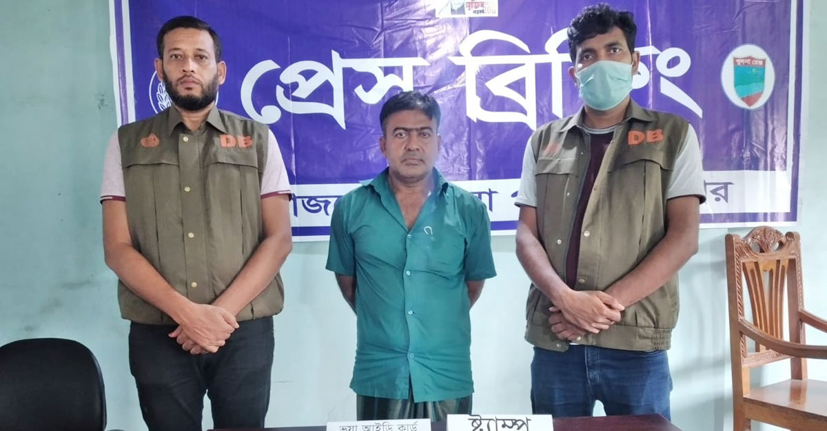 রোববার ভোরে সদর উপজেলার গহেরপুর গ্রামে অভিযান চালিয়ে তাকে গ্রেফতার করা হয়। তিনি ওই গ্রামের বক্কার মোল্যার ছেলে। তার কাছ থেকে নন-জুডিশিয়াল স্ট্যাম্প, সেনাবাহিনীর মালি পদে ভুয়া নিয়োগপত্র ও ভুয়া আইডি কার্ড উদ্ধার হয়েছে।